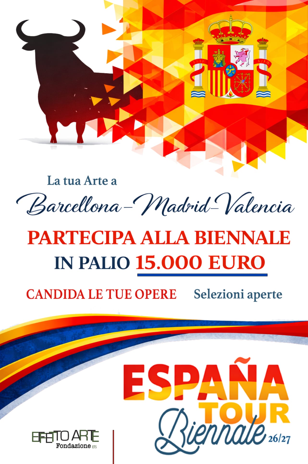 La Fondazione Effetto Arte è lieta di presentare il progetto video espositivo, espositivo ed editoriale “España Tour Biennale 26/27”, ideato per promuovere e valorizzare il lavoro di un selezionato gruppo di artisti in occasione di importanti appuntamenti espositivi organizzati in Spagna.